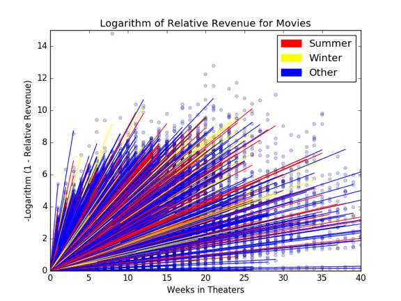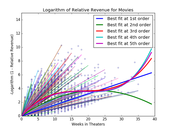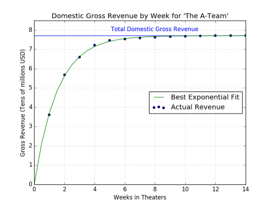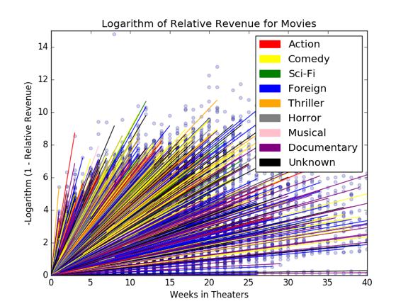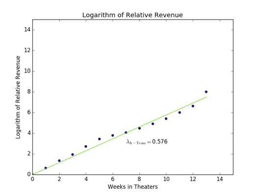 Figure 1 shows an example; this is not unusual, this is literally the first movie considered. We can get a better estimate of how exponential the revenue is by re-writing this as