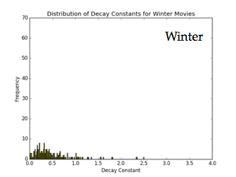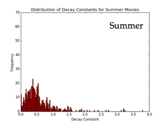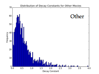 Sampled 2,500 movies Decay constant: median ~ 0.43/week, mean ~ 0.58/week